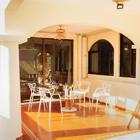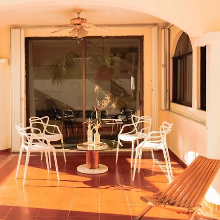 ベト・アビラ・スタジアムからわずか1.1km離れたところにあるCasa Con Alberca Privada 3Br Ideal Para Familias Y Grupos Hasta 9 Personas カンクンには、庭園の景色を望むテラスがあります。 プライベートなプールを提供する宿泊施設から車で15分離れたエセニカ タワーお客様を招待いたします。